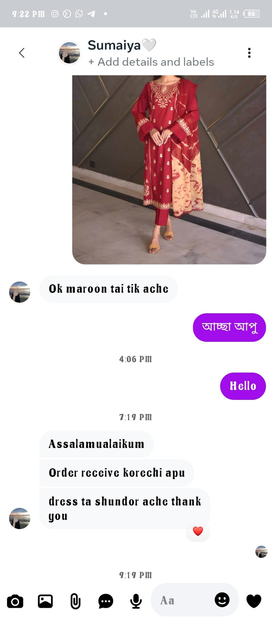 অনেক সুন্দর হয়েছে ড্রেস টা 😊
